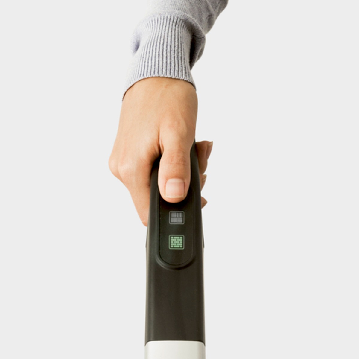 Using steam to tackle dirt: The Kärcher SC 2 Upright can clean any sealed hard floor – even wood. With its preset, easy-to-use steam flow control with two steps, thorough cleaning using the Kärcher steam mop removes up to 99.999% of viruses¹⁾ and 99.99% of all typical household bacteria²⁾ from hard surfaces. The steam mop heats up in an instant and is immediately ready for use with a fillable and removable fresh water tank, incl. descaling cartridge. The operating status of the device is displayed via the colour codes displayed in the LEDs on the handle. The combination is perfect: for an even deeper clean and fast changeover of cloths without any contact with dirt, Kärcher floor cleaning cloths are fastened to the EasyFix floor nozzle by means of a hook-and-loop fastener.